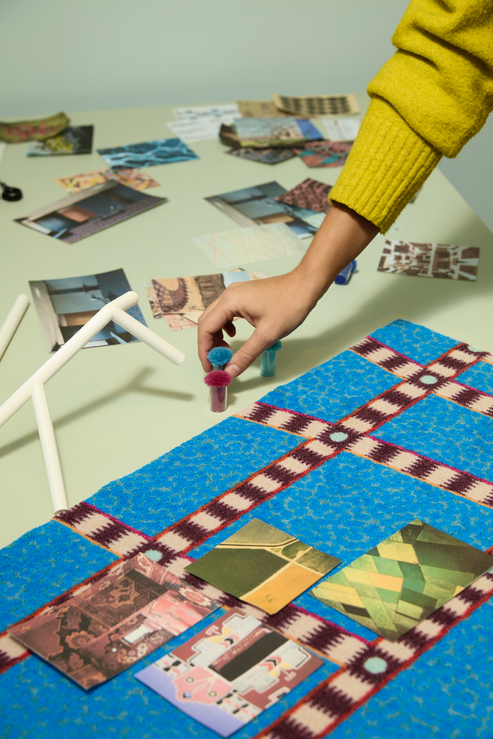 Haima is a pattern created for the italian brand Radici Carpet, it interprets the textile surface as a system of expanding visual fields. The pattern is built through a network of lines that shift and align along non-orthogonal directions, giving rise to unexpected grids and a constantly changing visual cadence.